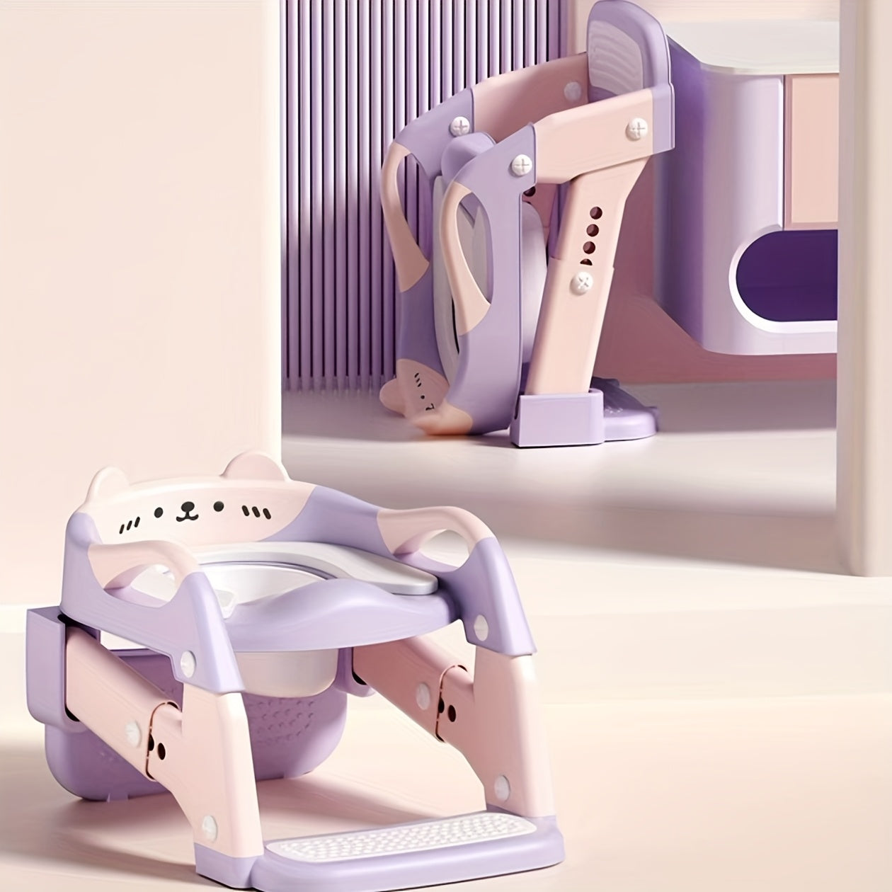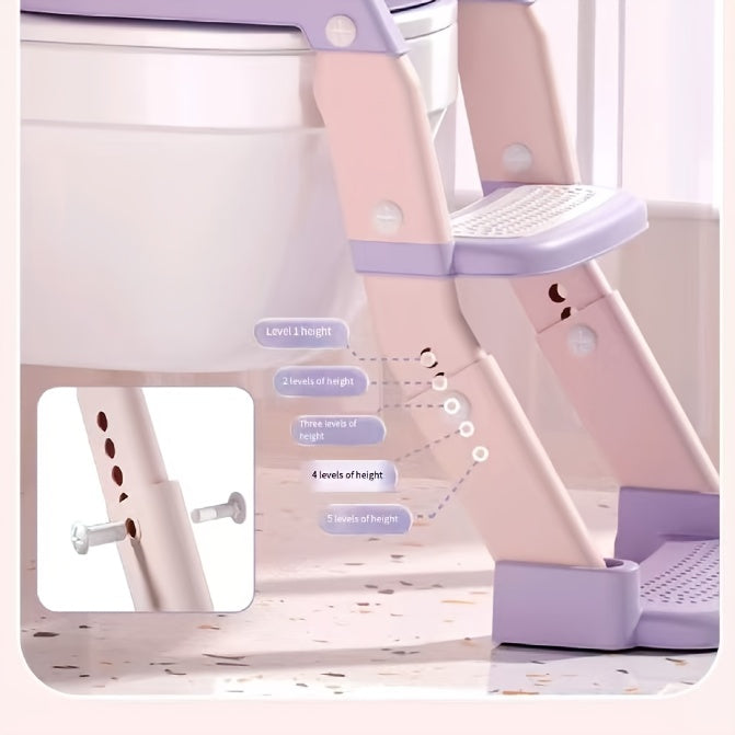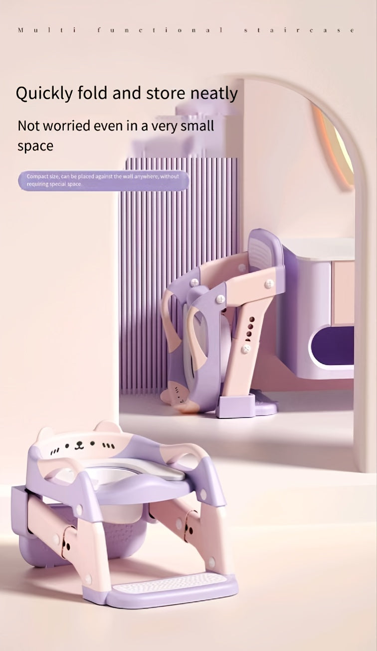 3-in-1 Kids Toilet Training Seat, Multifunctional Step Stool for Children, Foldable Step Stool with Non-Slip Footrest - Adjustable Height, Durable Plastic, Space-Saving Design, Neutral Color, Safe Grip Handle, Ideal for Home