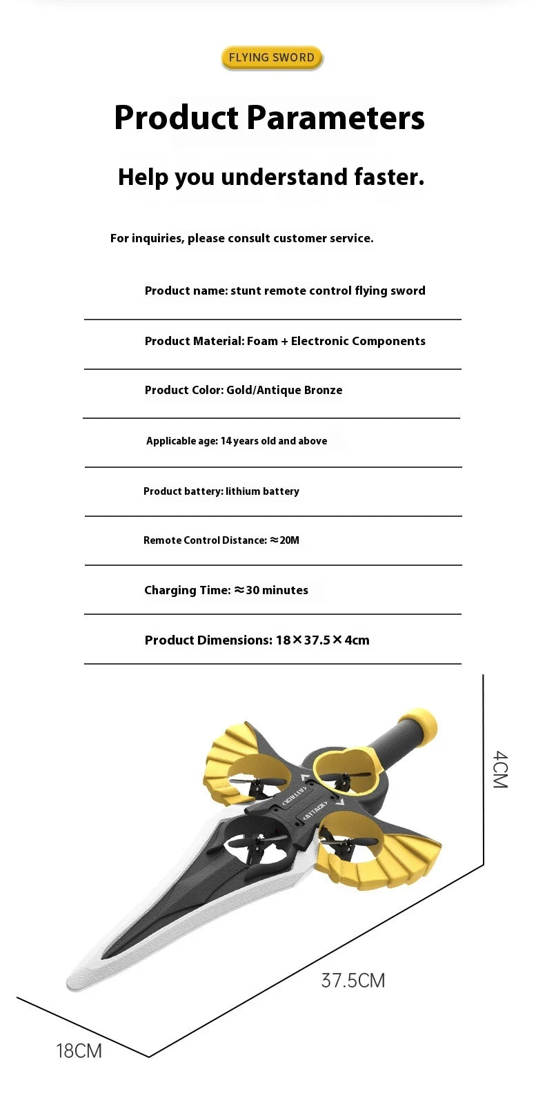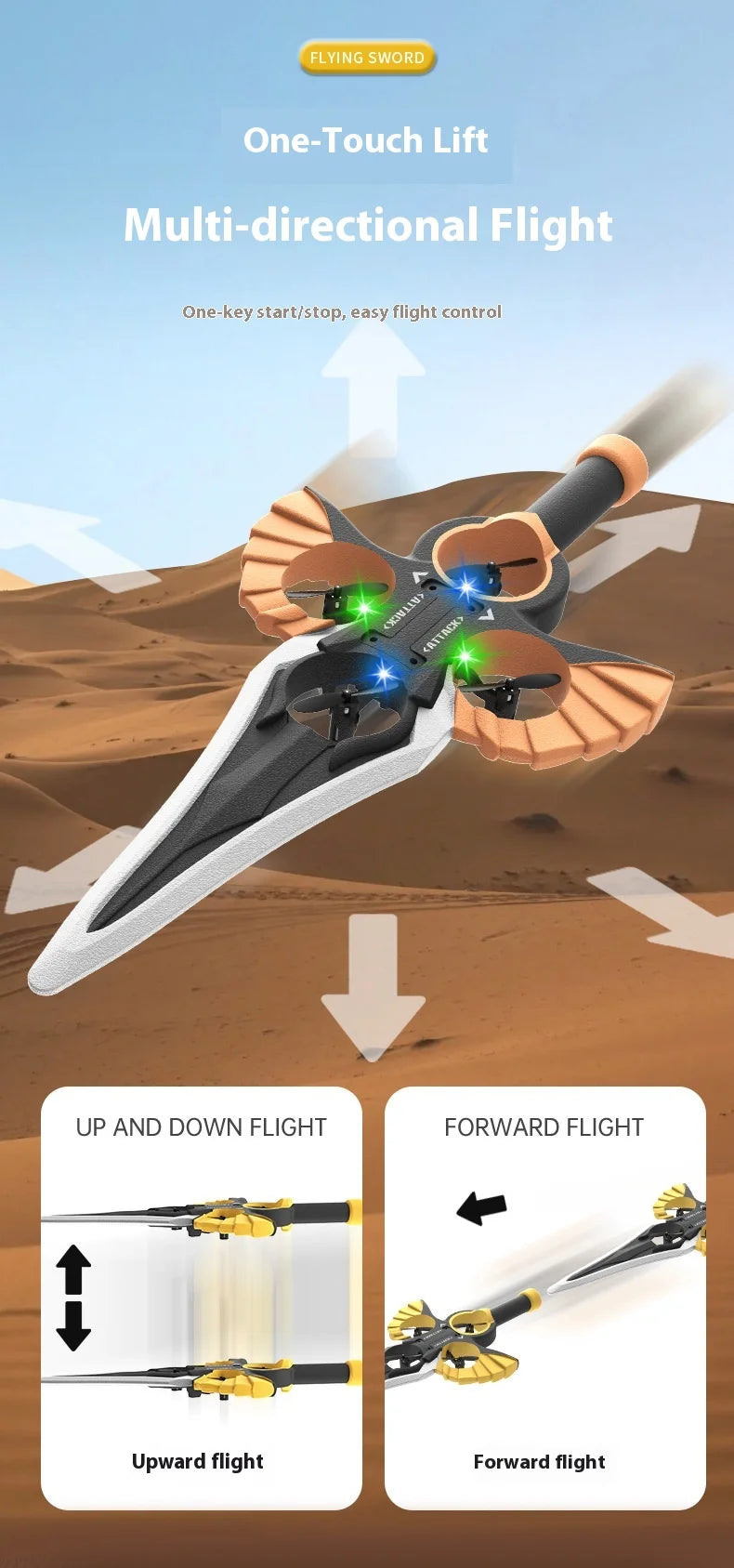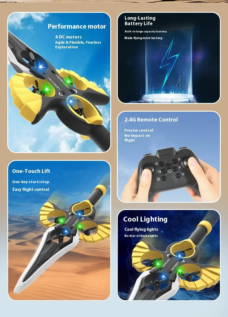 Ferngesteuertes fliegendes Schwert, ferngesteuertes Stunt-Flugschwert, neues ferngesteuertes ferngesteuertes Flugzeug, 360-Grad-Geste, ferngesteuertes Schwert