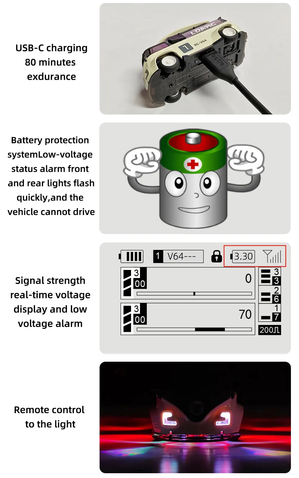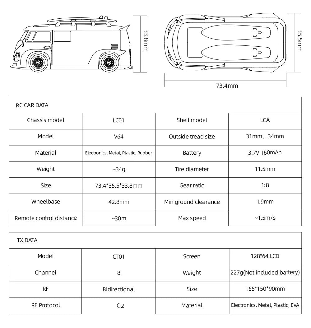 LDARC 1:64 V64 RTR Mini Elektro-RC-Automodell 2,4 GHz Lange Akkulaufzeit Desktop-RC-Auto Mini-Rennwagen Unterhaltungsspielzeug