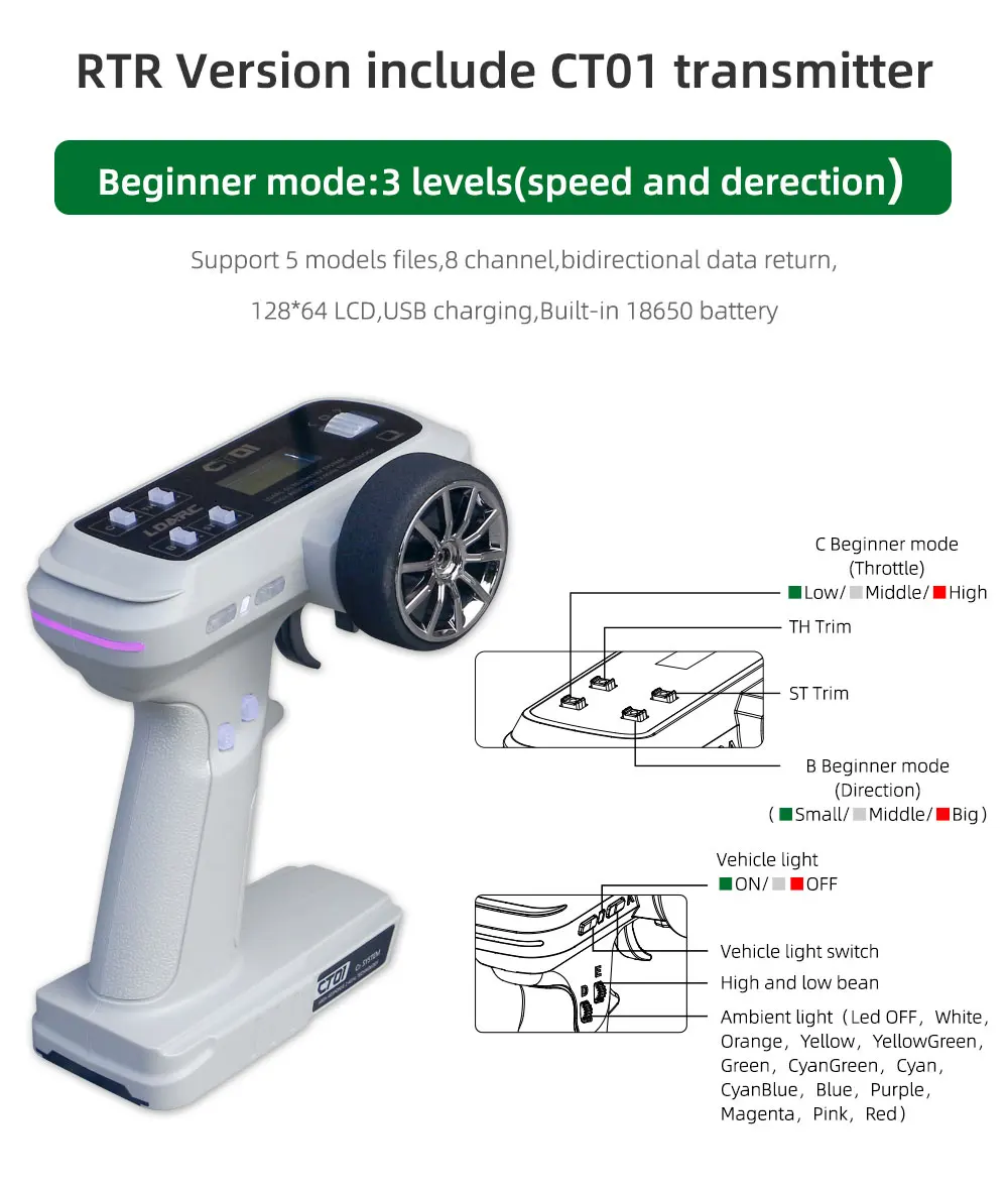 1.RTR umfasst Auto- und CT01-Sender.und das Auto und der Sender wurden vor dem Versand binden (bereit zum Laufen).