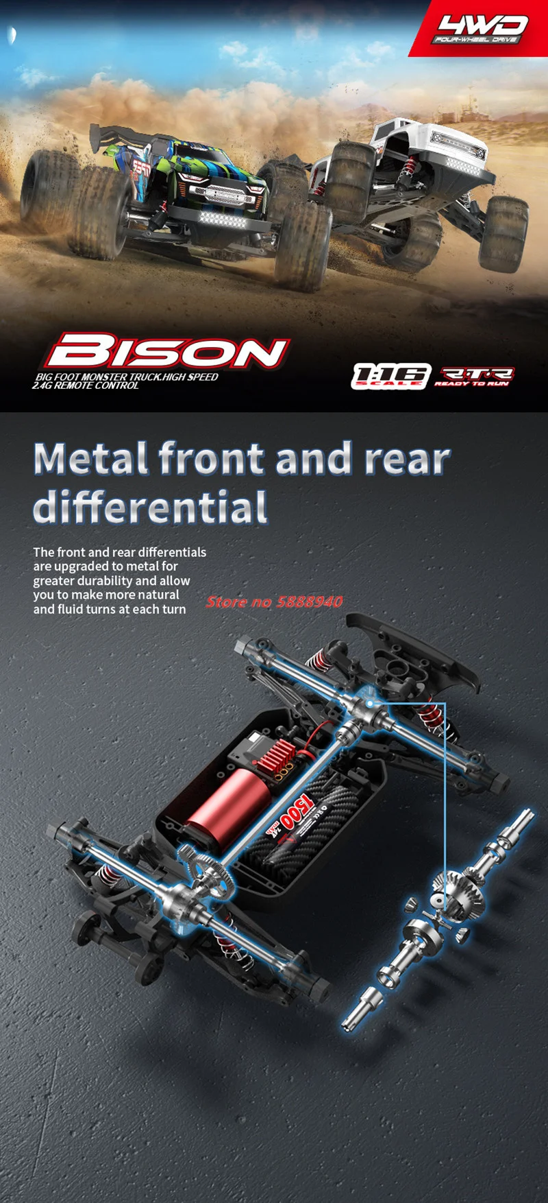 Professioneller 1:16 80 km/h bürstenloser RC-Rennwagen mit 3S-Batterie 2,4 G 1:16 4WD RC-Auto Off-Road ClimbingTruck Hochgeschwindigkeitsmodell