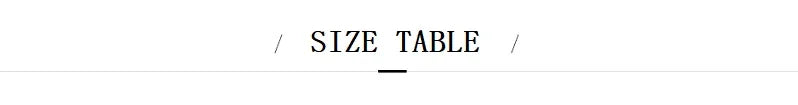 Größen tabelle (Einheit: cm) |