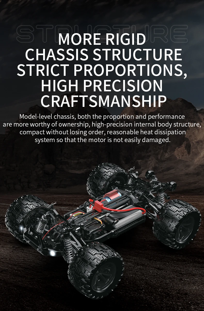 Model-level chassis, both the proportion and performance are more worthy of ownership, high-precision internal body structure, compact without losing order, reasonable heat dissipation system so that the motor is not easily damaged.