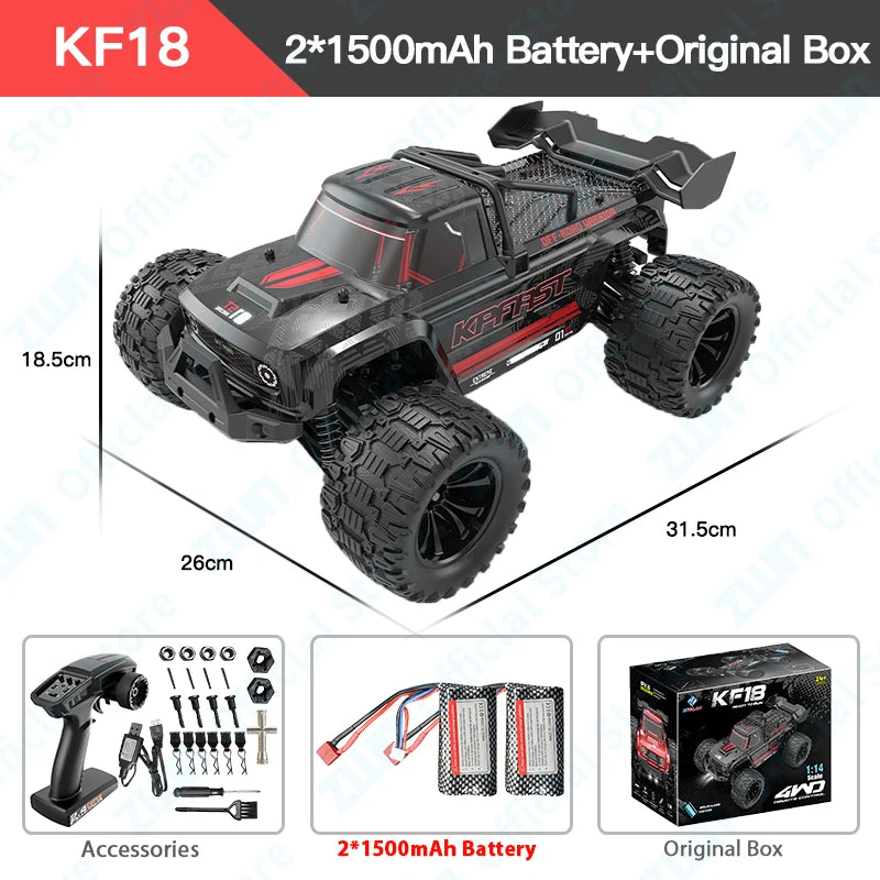 ZWN KF18 1:14 Bürstenloses RC-Auto mit LED-Licht, professionelles 4WD 2,4G Fernbedienung, Offroad-Monstertruck, Spielzeug für Kinder, Geschenk